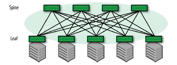 注意,在以上模型中,Spine 仅用于连接 Leaf,因此在这种模型中, 所有的功能(functionality)都集中在 Leaf 上。