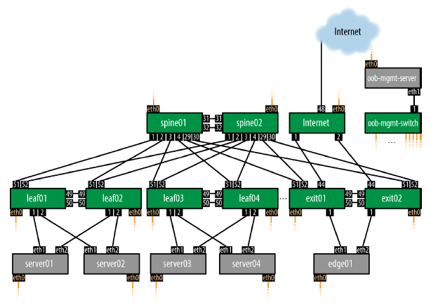 由于 Spine 和 Leaf 之间是 full-mesh,网线会特别多,排线会复杂一些。