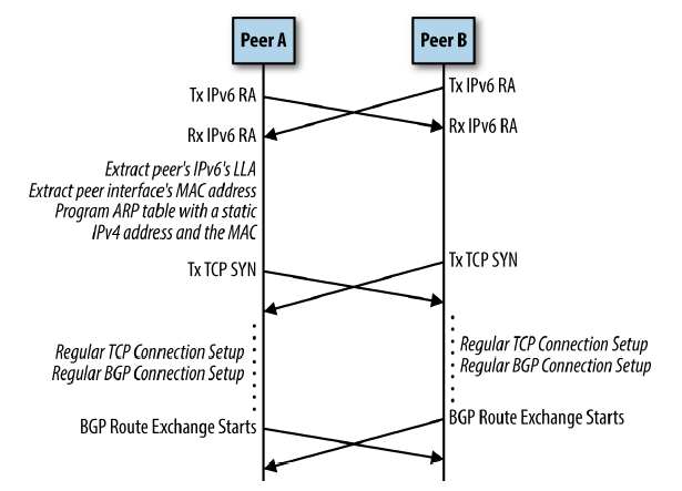 动态邻居模型基于共享子网,而 unnumbered 模型不需要共享子网。和路由器类似,服务器 的 IP 地址和接口是没有关系的,一般配置为 loopback 地址。每个服务器可以分配一个 /32 地址。因为通告 IPv6 LLA 和路由器做 peer,因此无需共享的子网。