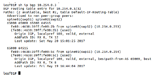 至此,网络设计领域的老兵会意识到:服务器上跑的 BGP 其实只是一个 GBP speaker, 不需要最优路径计算、将路由添加到路由表等全套 BGP 功能。大型互联网公司也意识到 了这一点,因此他们会运行一些能作为 BGP speaker 的软件,例如 ExaBGP。