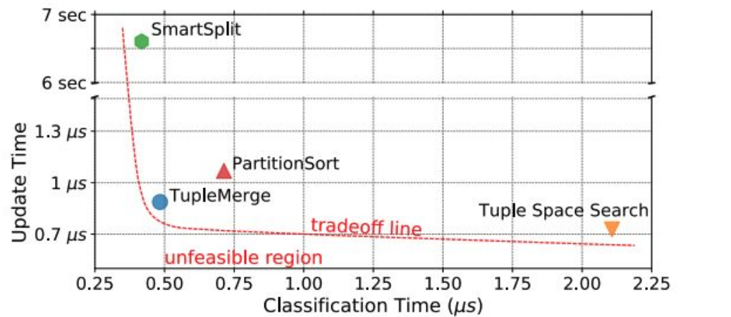另外,我们最近也在看当前主流的包分类算法有哪些,例如 TupleMerge, 下面是论文中的截图: