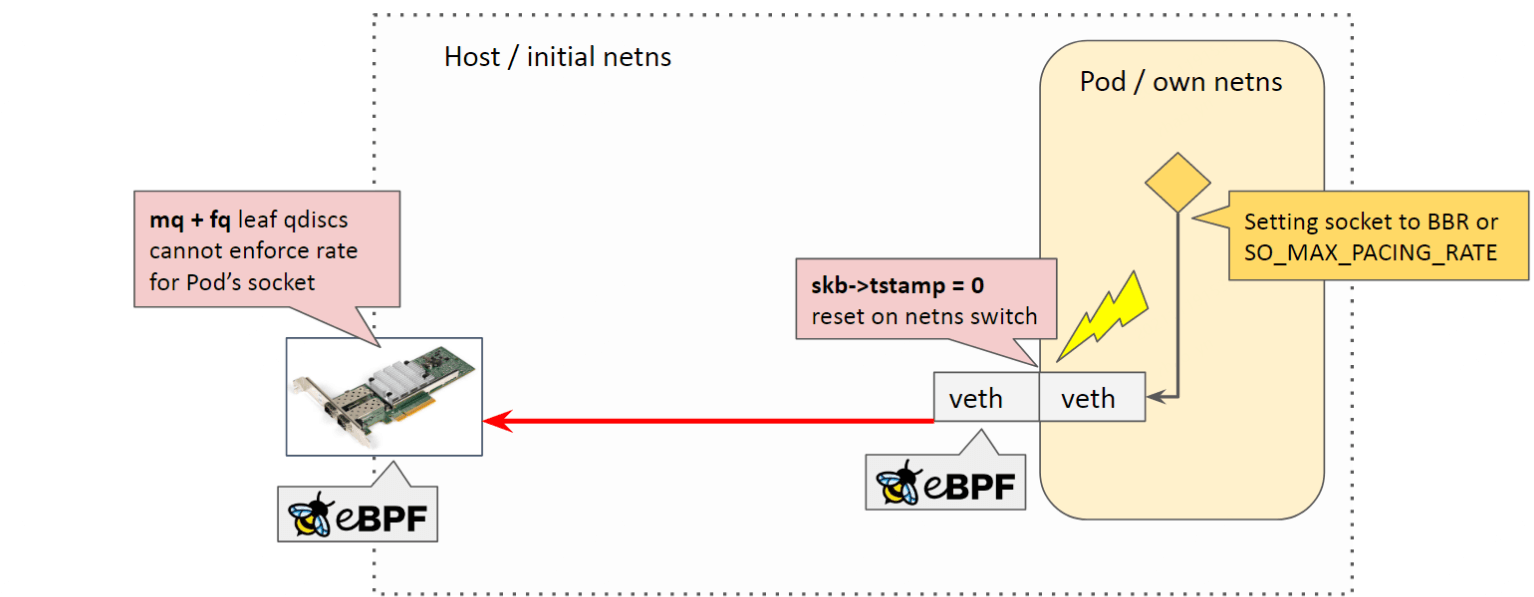 - TCP pacing for Pods from initns