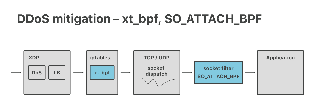 hashlimits 和 ipsets。我们也用到了 xt_bpf iptables 模块,以在 iptables 内运行