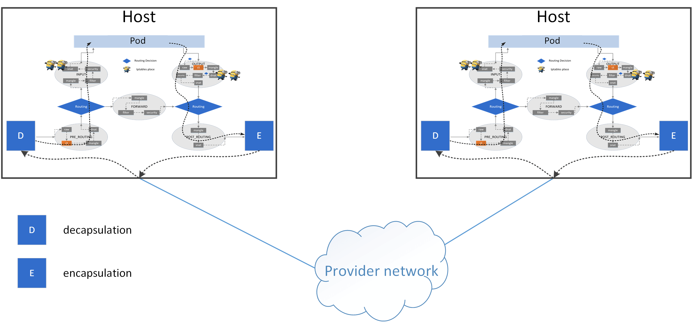 - All host traffic goes through netfilter framework.