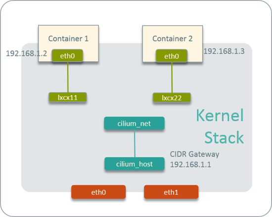 Upon starting, it creates a veth pair named cilium_host <--> cilium_net, and