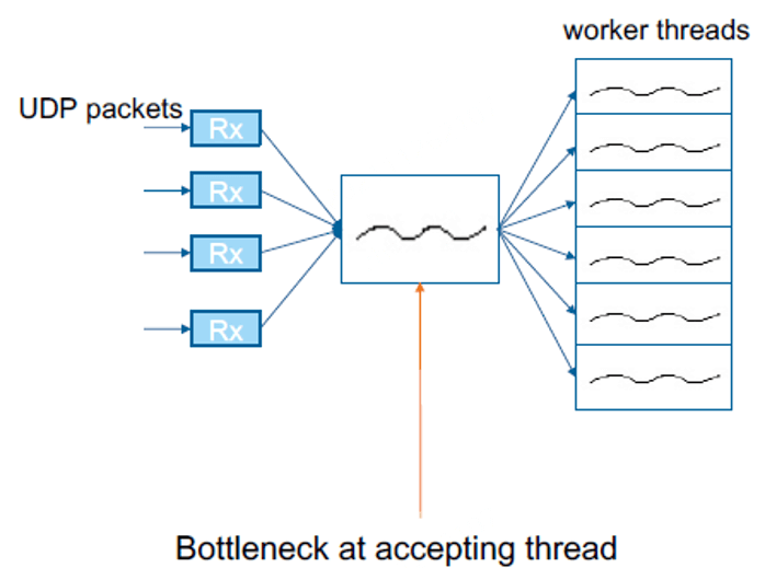 这也解决了扩展性问题,现在可以并发接收包(one-thread-per-socket),不用担心新进程启动时的 disruptions 或 misrouting 了: