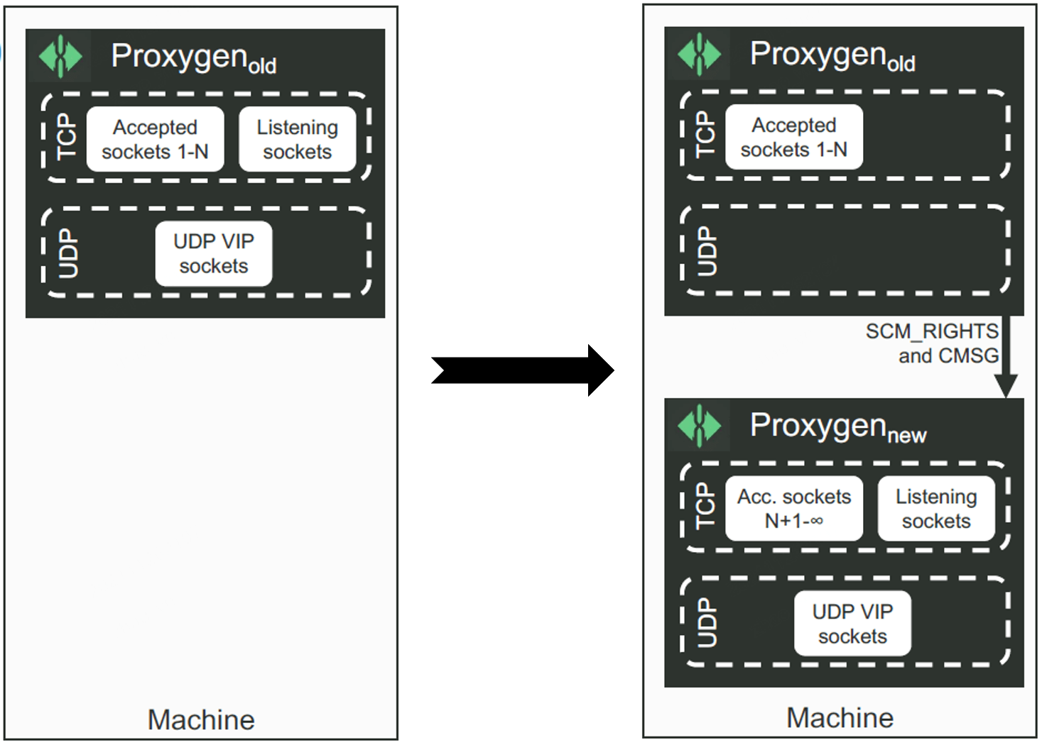 本节介绍了我们的基于 BPF_PROG_TYPE_SK_REUSEPORT 和 BPF_MAP_TYPE_REUSEPORT_SOCKARRAY 实现的新一代发布技术,它能实现主机内新老实例流量的无损切换,优点: