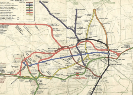 例子:伦敦地铁图的演变。去掉等比例和地理位置标记,专注地铁乘客的核心需求:从地点 A 到地点 B。