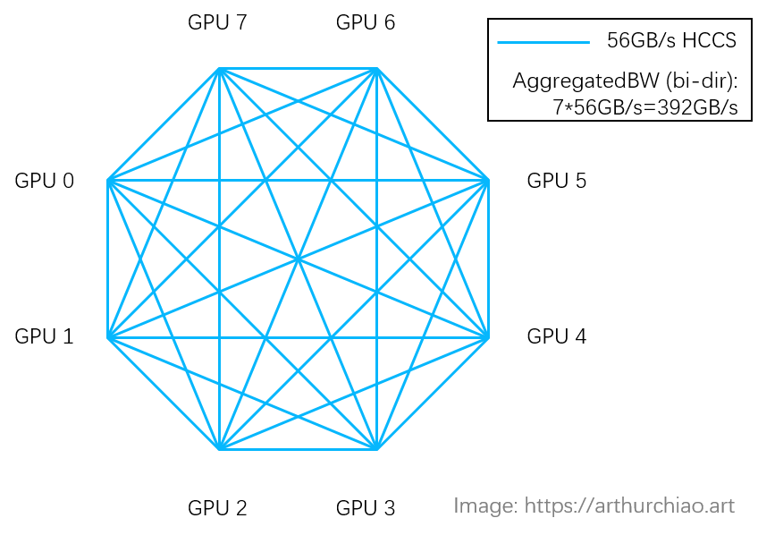 Huawei HCCS: peer-to-peer topology (no stuffs like NVSwitch chip), so (bi-directional)