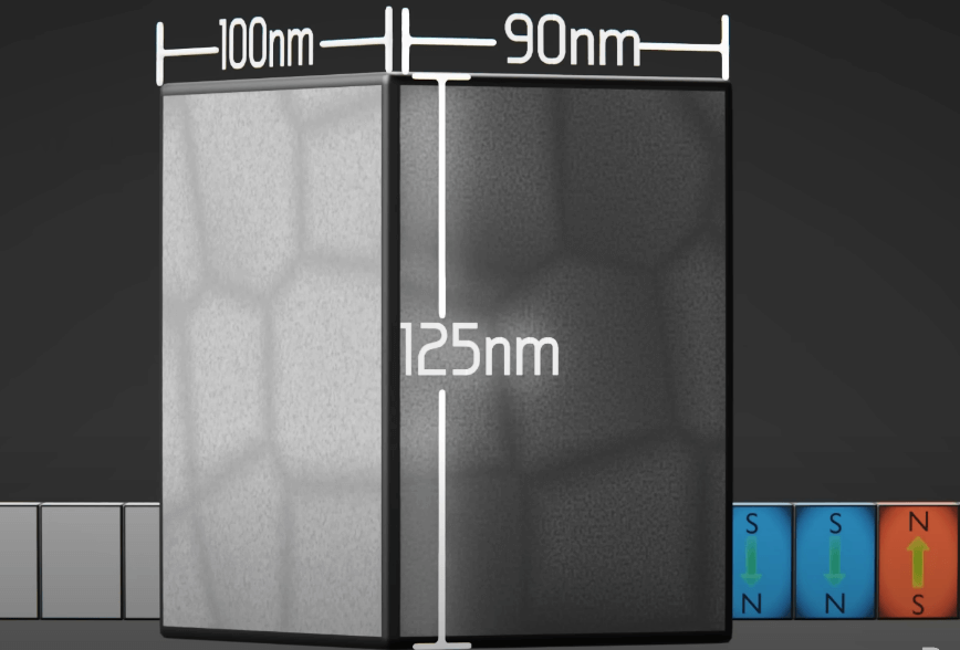 每个磁盘微块大小约为 90nm x 100nm x 125nm,