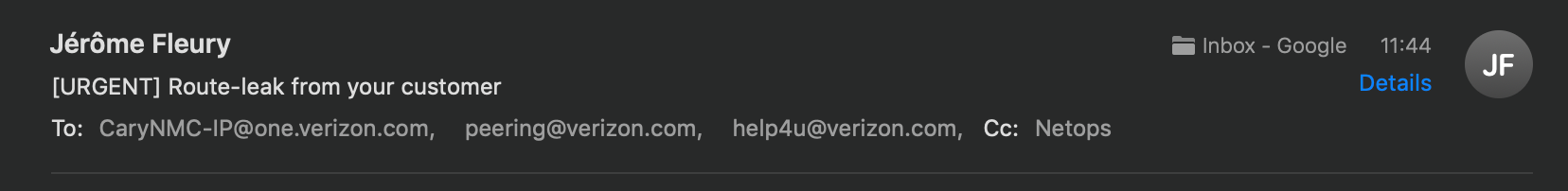 今天早上 10:30 UTC,互联网出现了一次短暂的心脏颤动。很多经由 Verizon(AS701)的