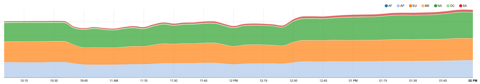 故障期间我们观察到了明显的流量下降,最糟糕的时候,我们的全球流量下降了 15%: