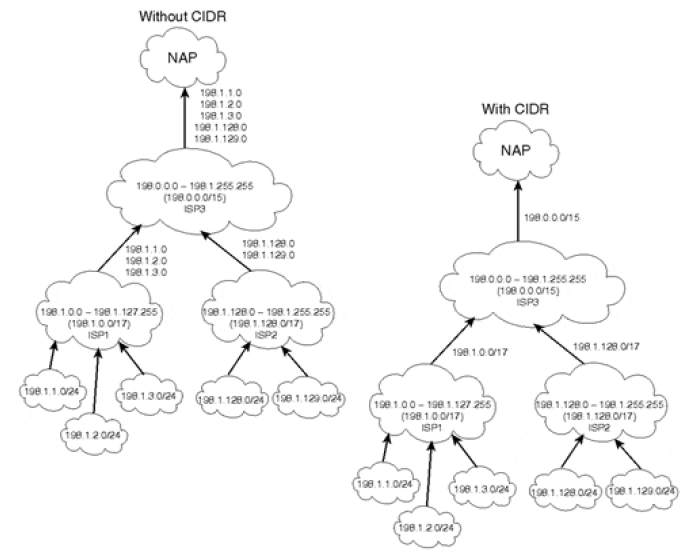 图 3-11 Classful Addressing Versus CIDR-Based Addressing
