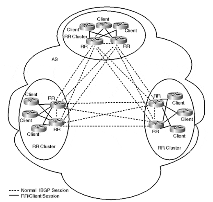 - 路由器只需要和 local RR 做 peer,大大减少 BGP session 的数量