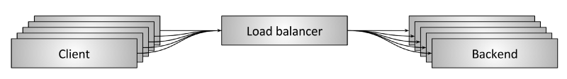 图 1 是网络负载均衡的高层架构图。若干客户端正在访问若干后端服务,它们中间是一个 负载均衡器;从高层看,负载均衡器完成以下功能: