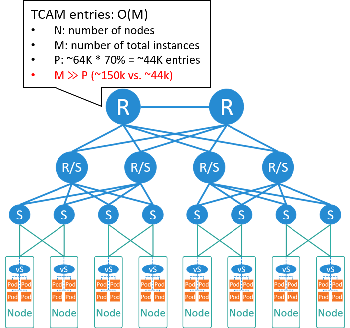 那可以算出总共有 30k 虚拟机,需要占用核心交换机 ~30K 表项。