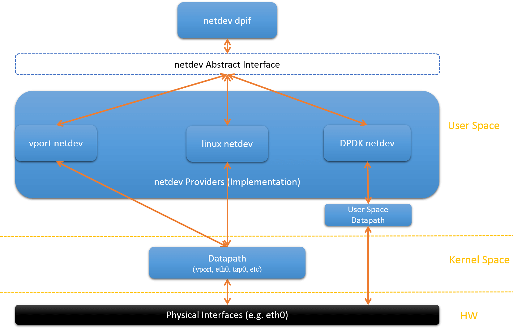 In the following, we only talk about the linux netdevs, vport netdevs, and dpdk netdevs.