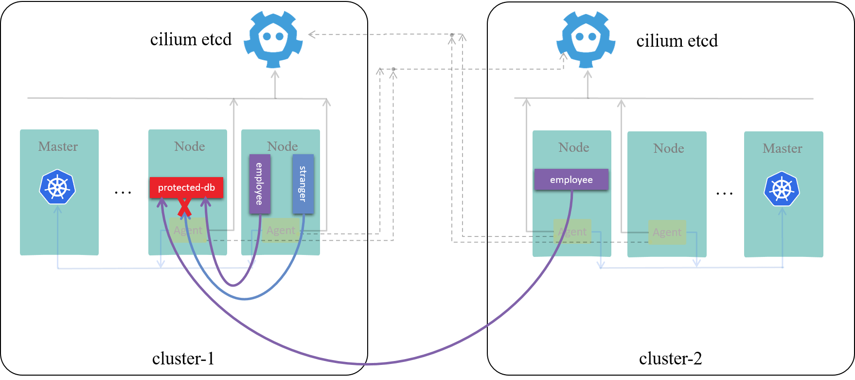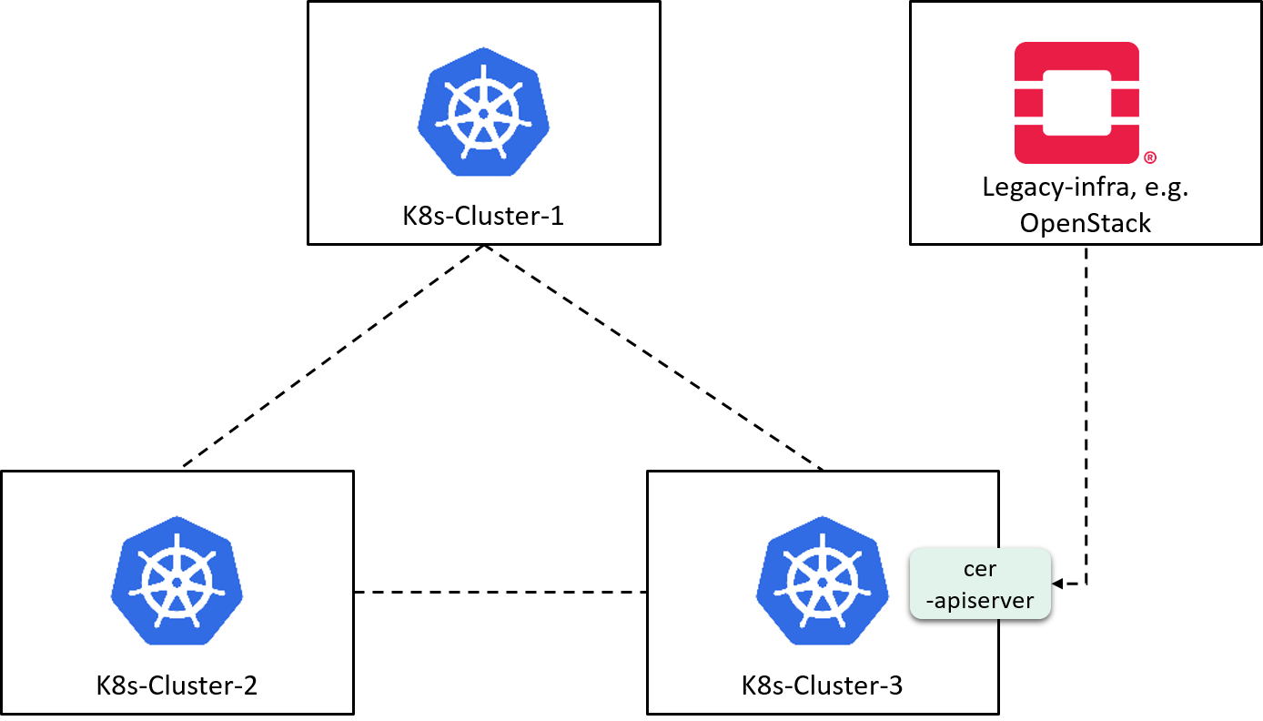 For companies which have evolved more than a decade, it’s highly likely that there is not only direct cross-boundary traffic, but also legacy workloads, such as VMs in OpenStack, BM system, or Kubernetes pods powered by networking solutions other than Cilium.