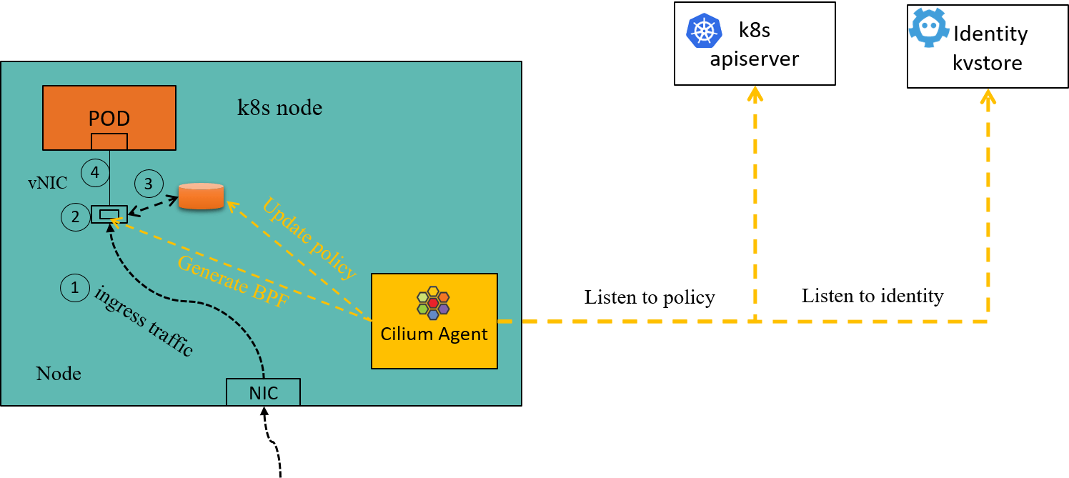 When a pod is created, a new identity might be allocated. On receiving an identity create event, all cilium-agents would regenerate BPF for all the pods on the node to respect the identity, which is a fairly heavy operation, as compiling and reloading BPF for just a single pod would take several seconds.