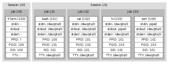 只有前台任务(ls | sort pipeline)会从 TTY 接收输入。类似地,只有前台作业是允