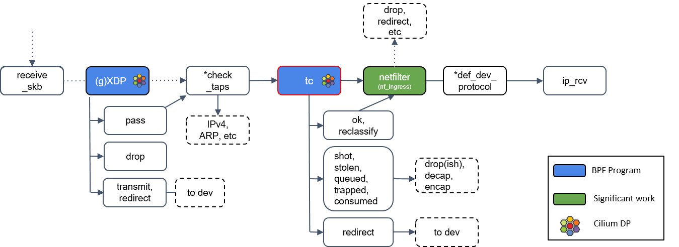 | Endpoint (includes Pods) | Endpoint | tc, cgroup socket BPF, sock_ops BPF, XDP |