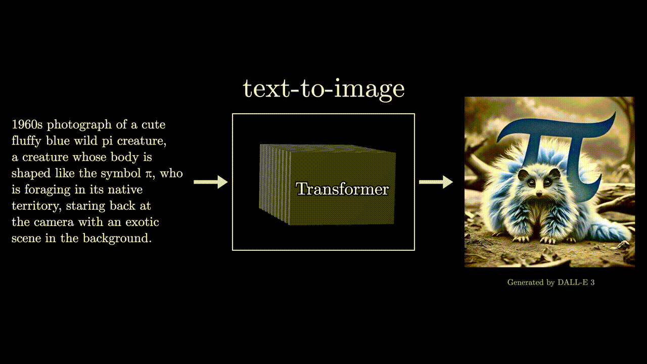 虽然无法让模型真正理解 "物种 π"是什么(本来就是瞎编的),但它竟然能生成出来,而且效果很惊艳。